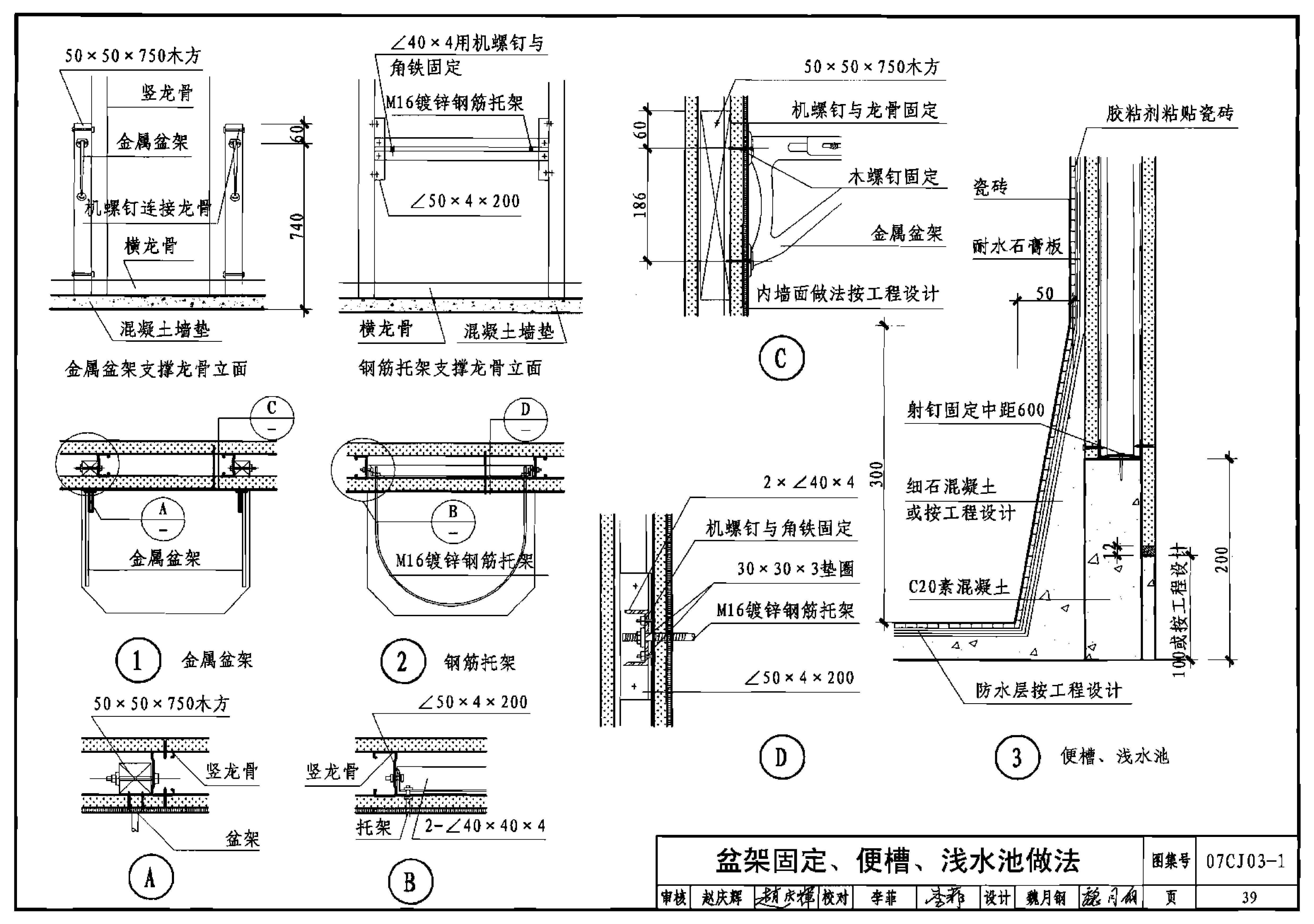 盆架固定、便槽、浅水池做法