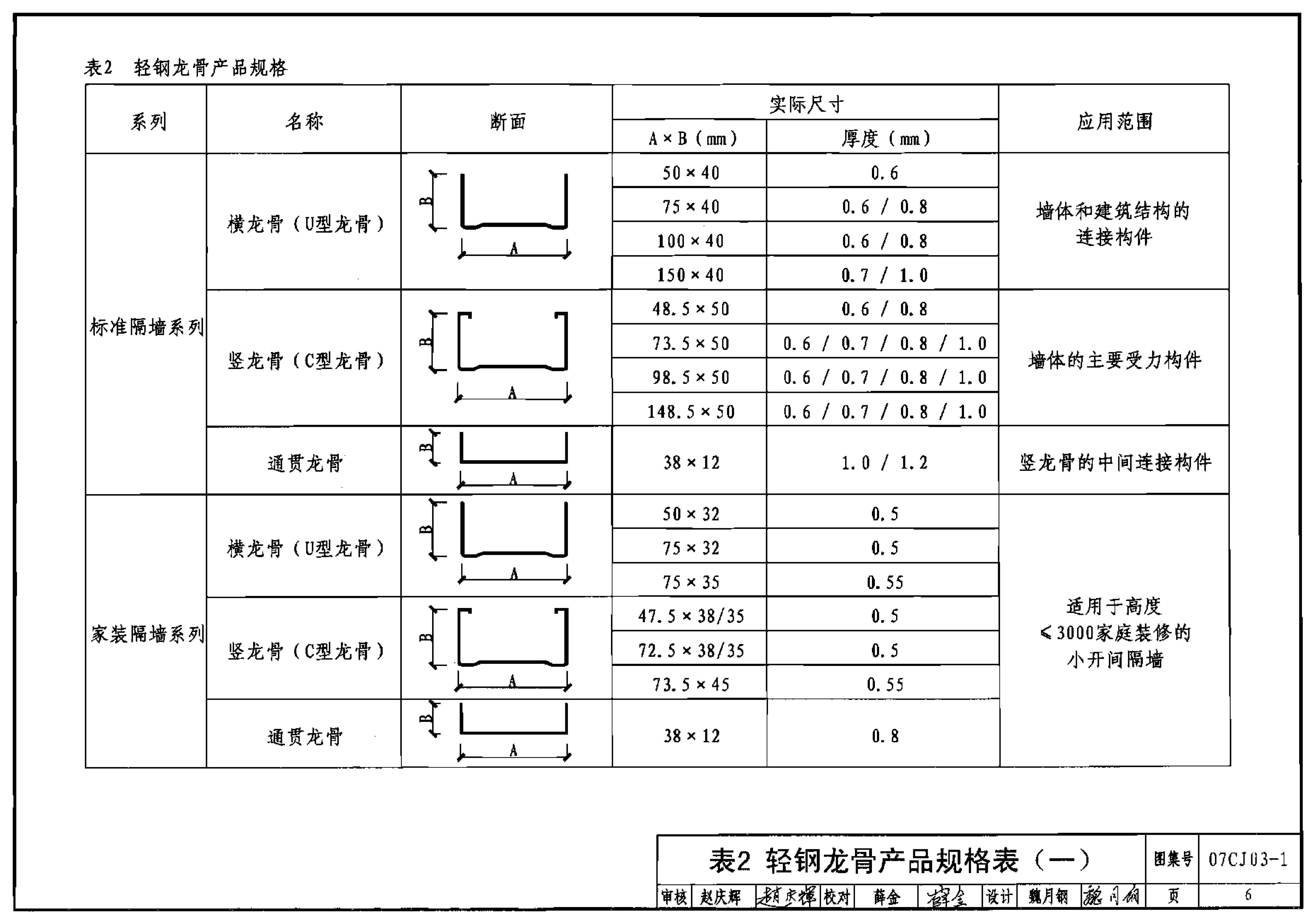 表2 轻钢龙骨产品规格表