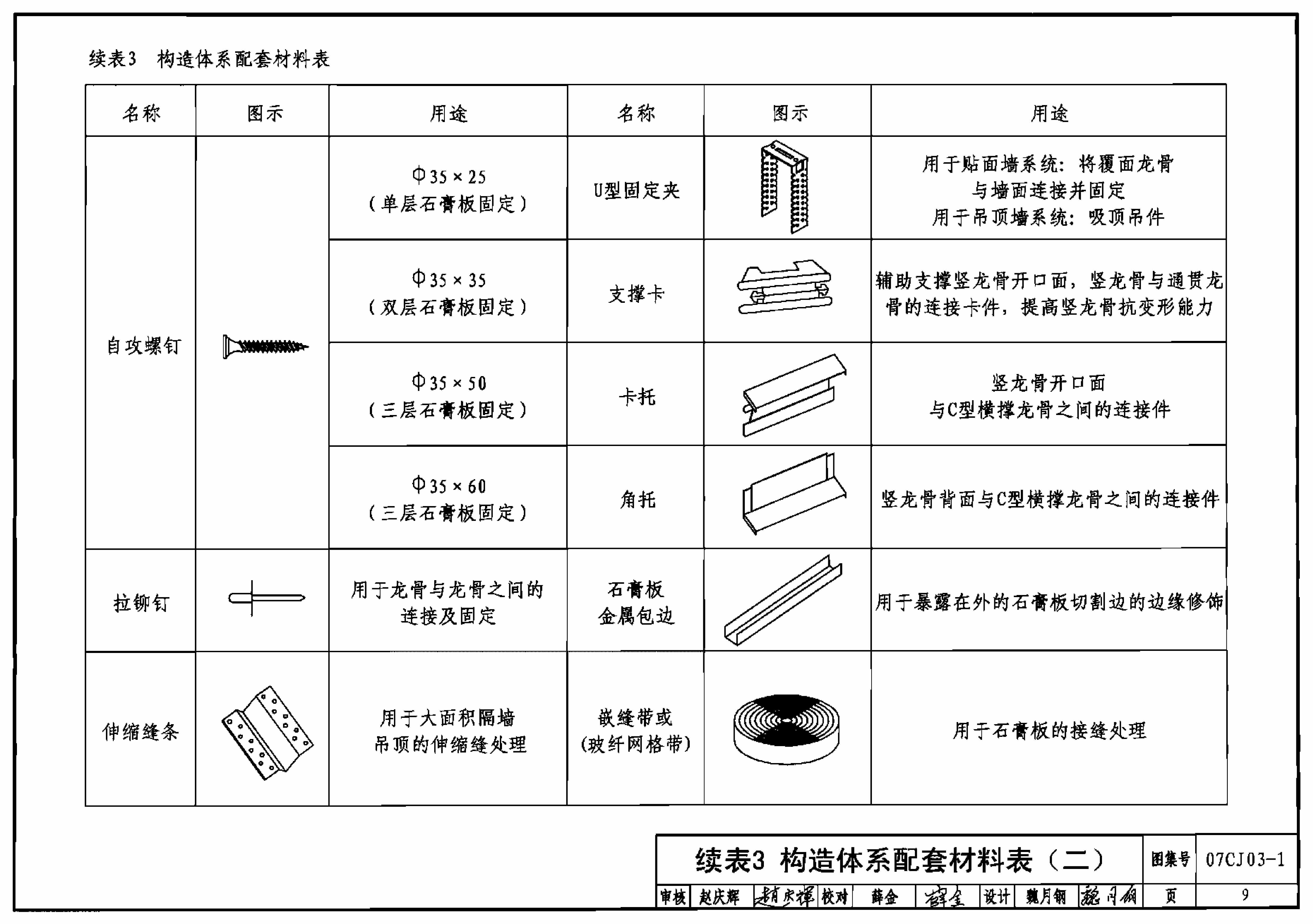 表3 构造体系配套材料表