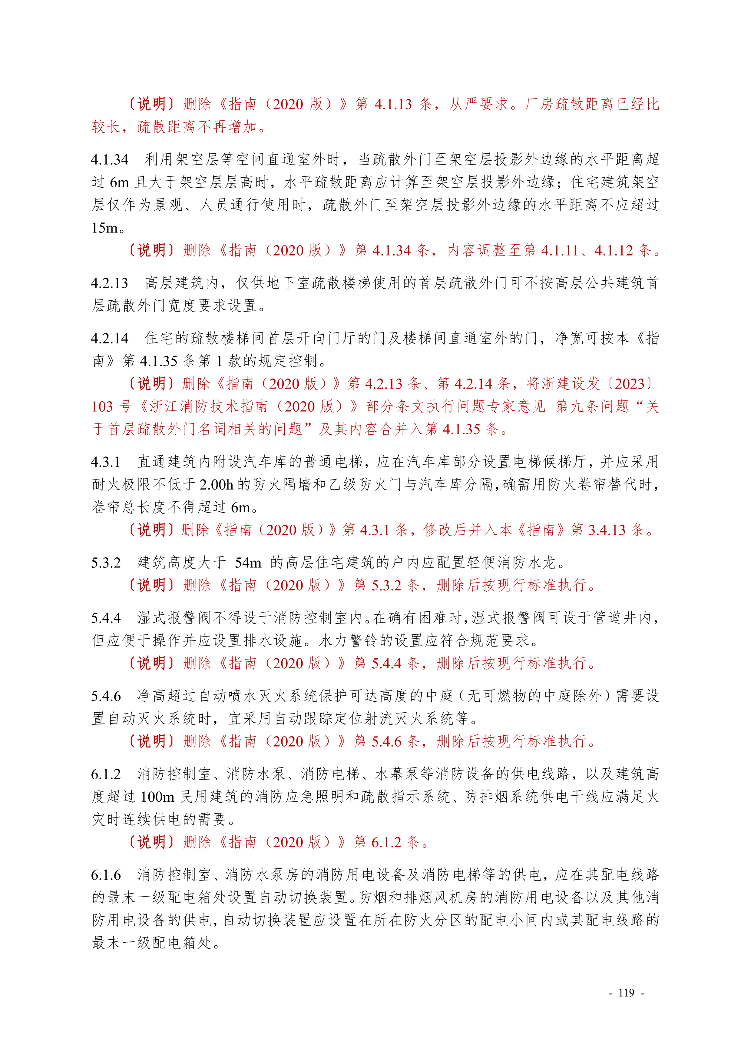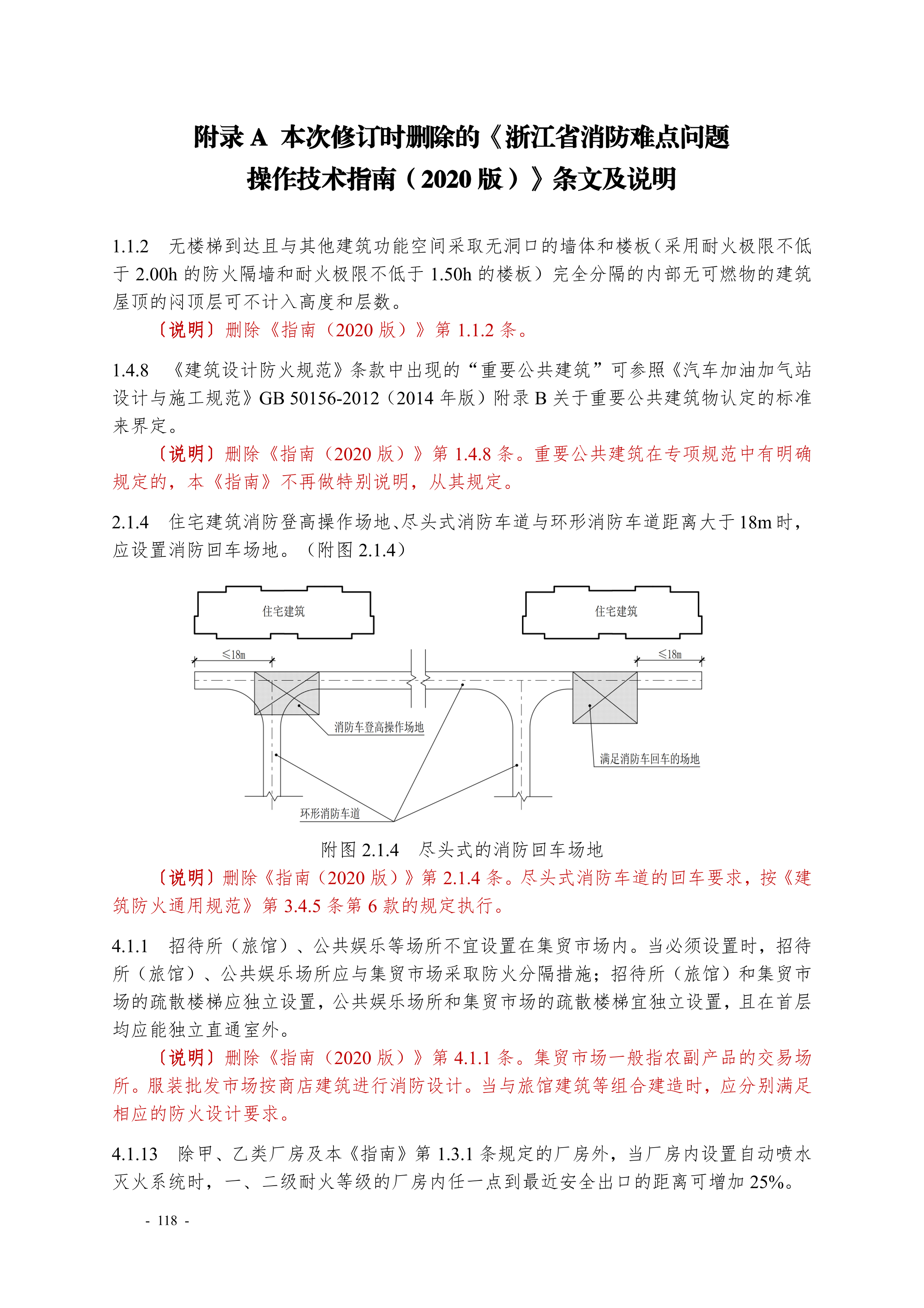 附录 A 本次修订时删除的《浙江省消防难点问题 操作技术指南(2020 版)》条文及说明
