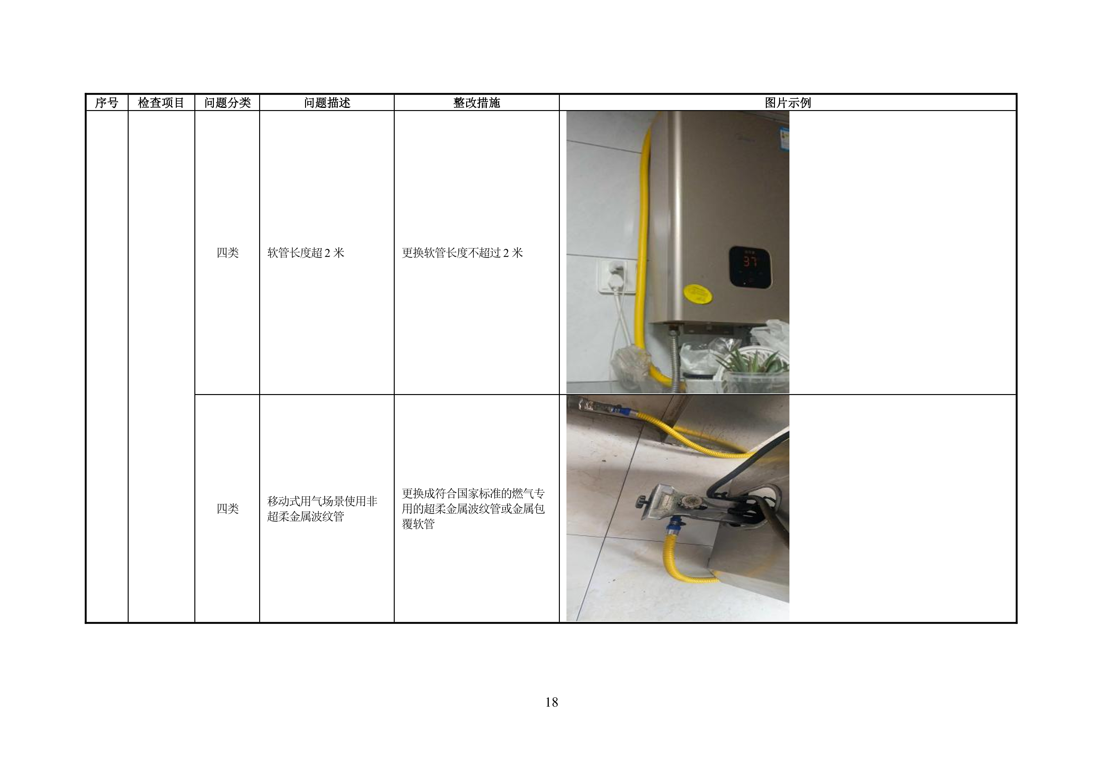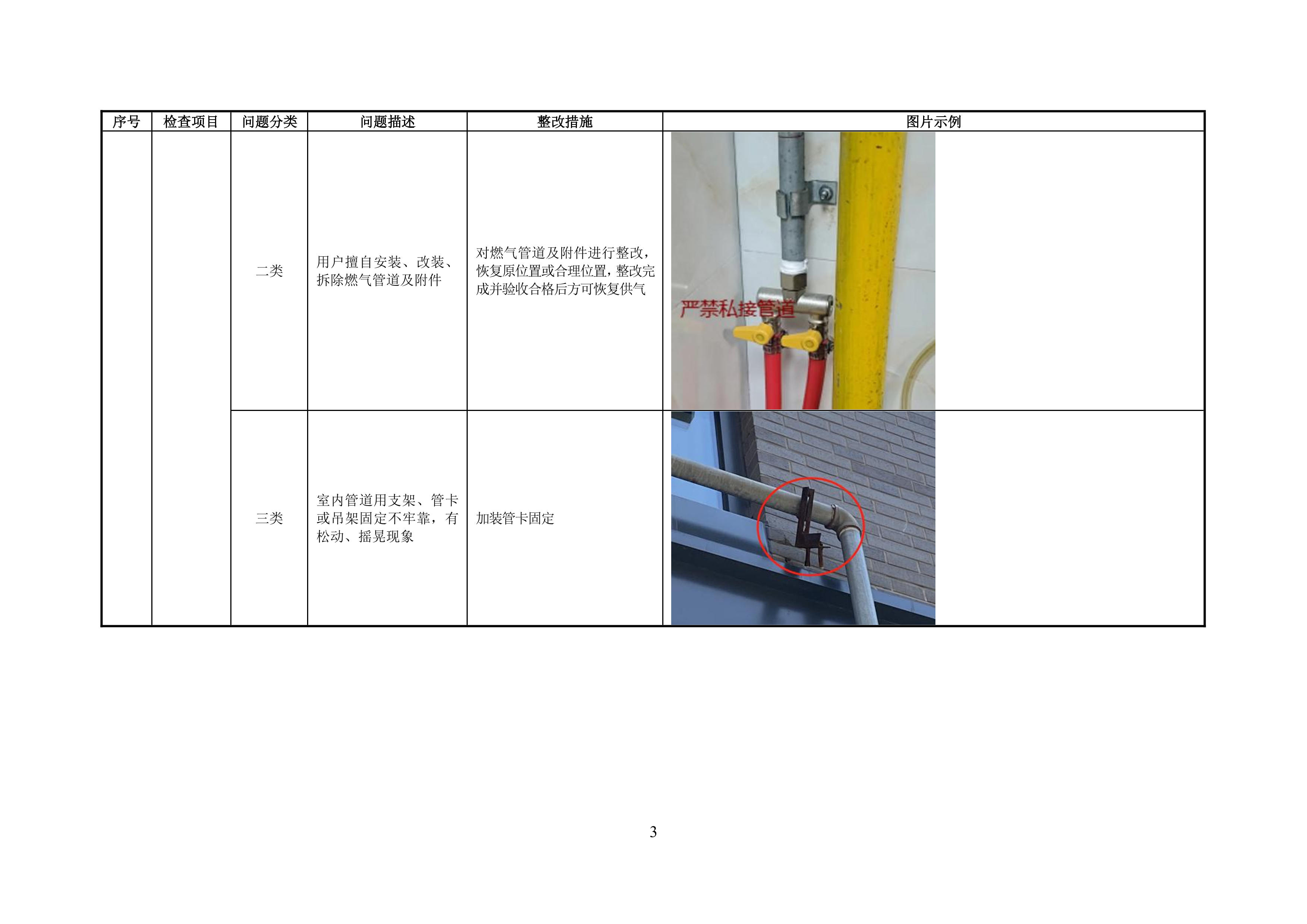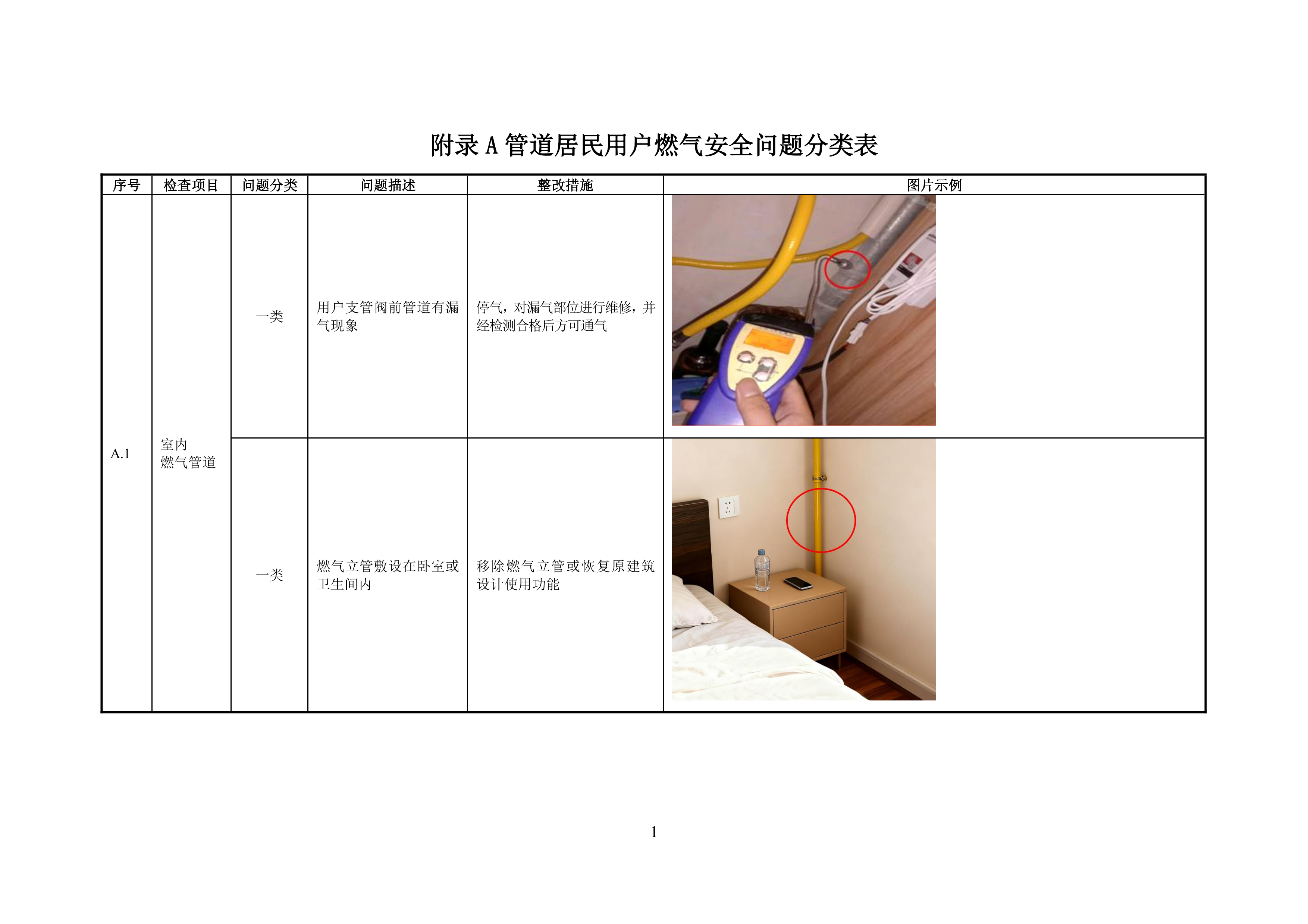 附录 A 管道居民用户燃气安全问题分类表