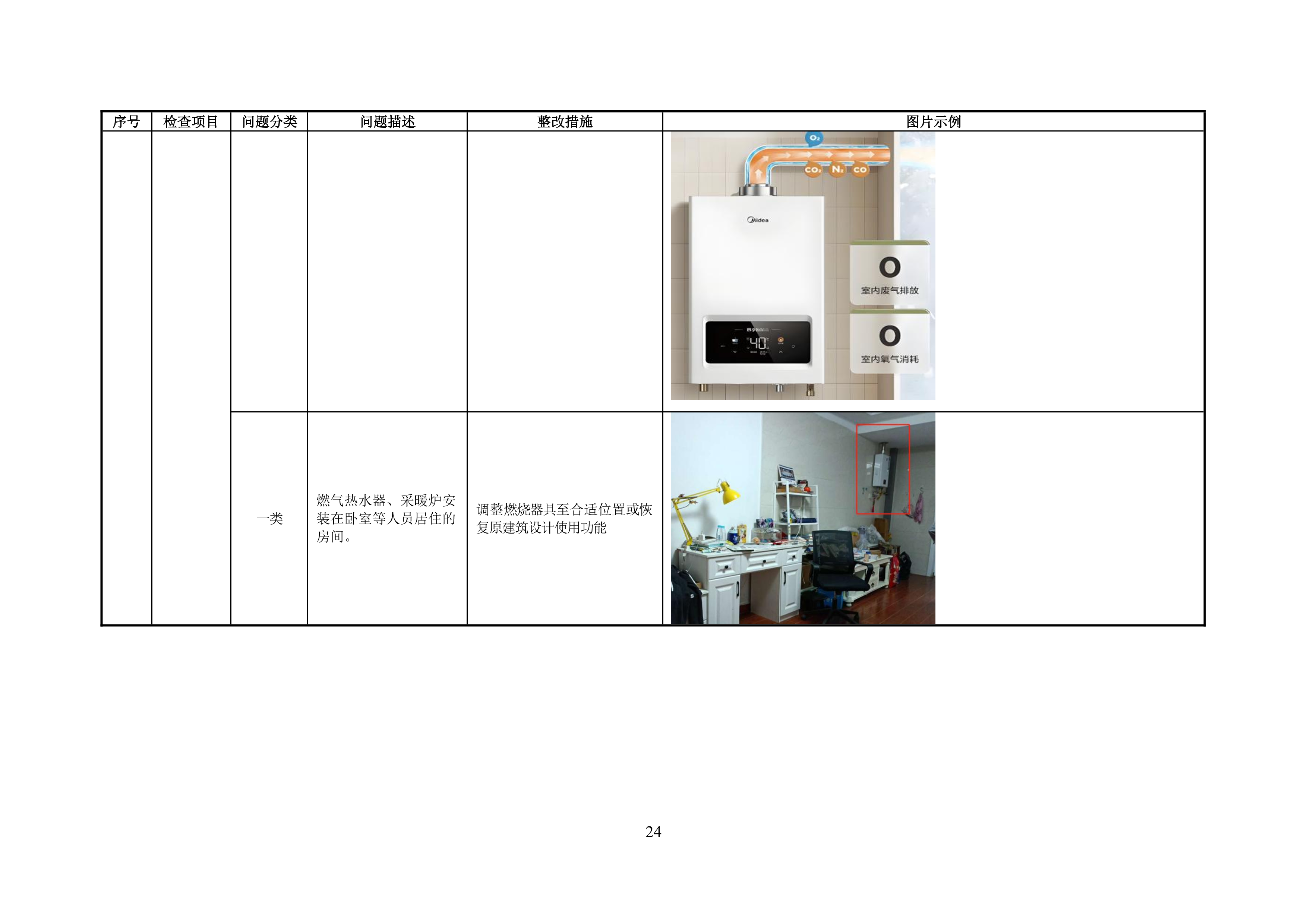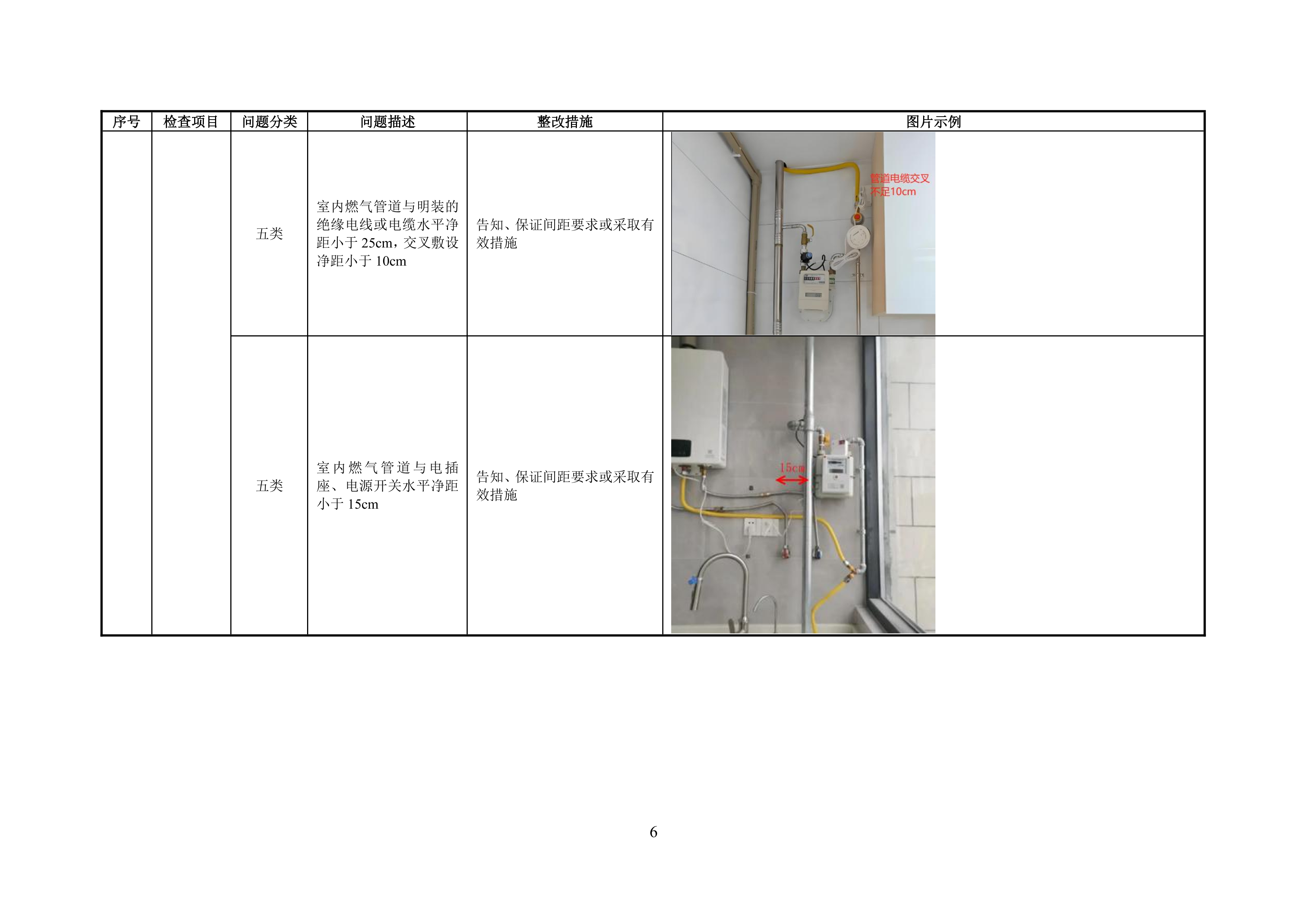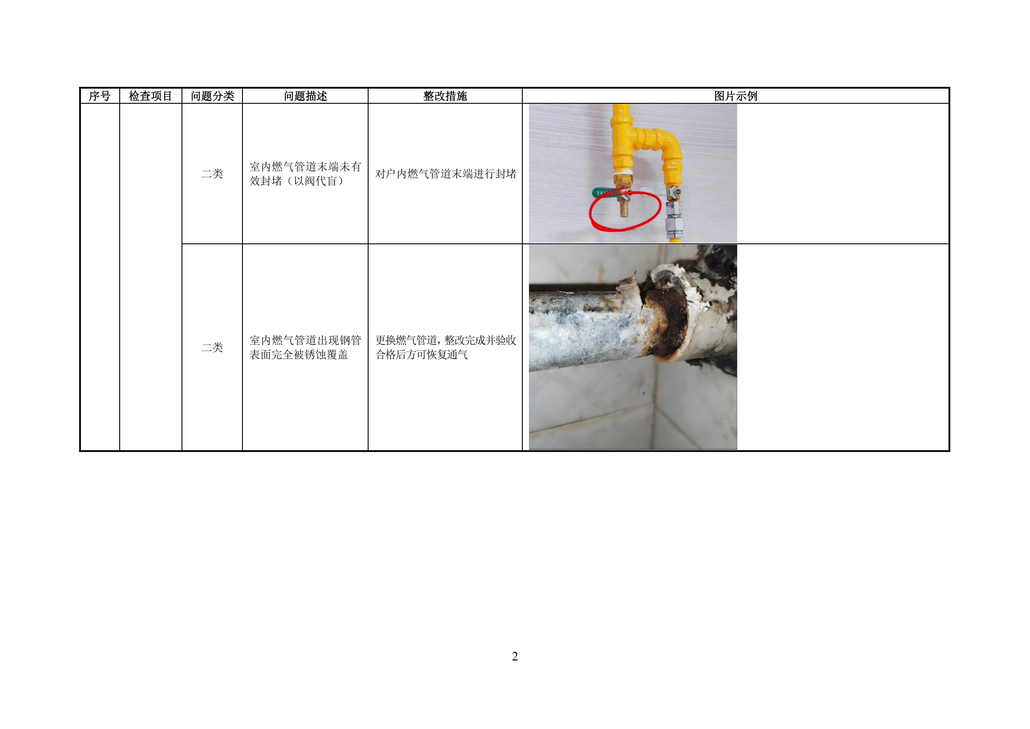 附录 A 管道居民用户燃气安全问题分类表
