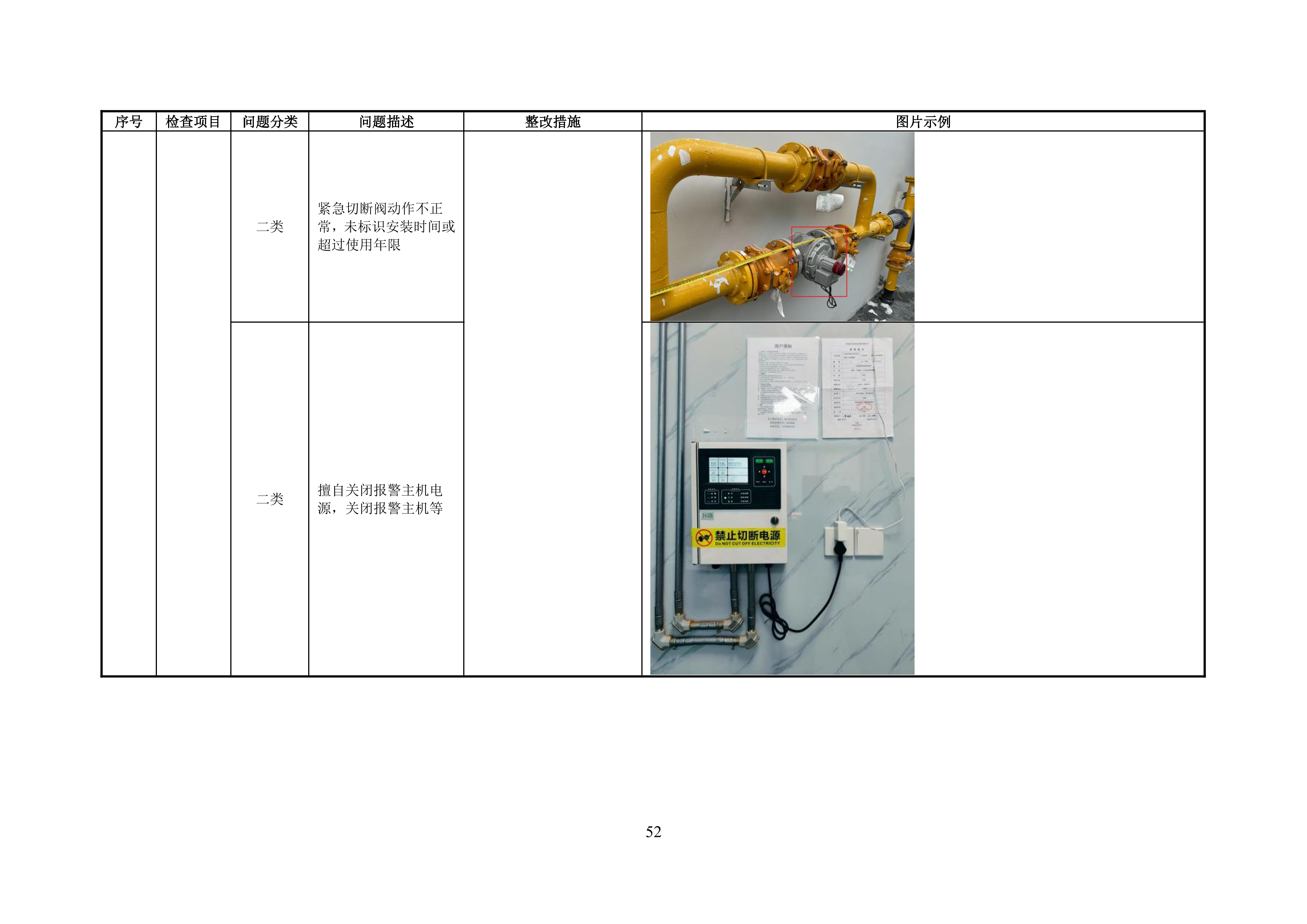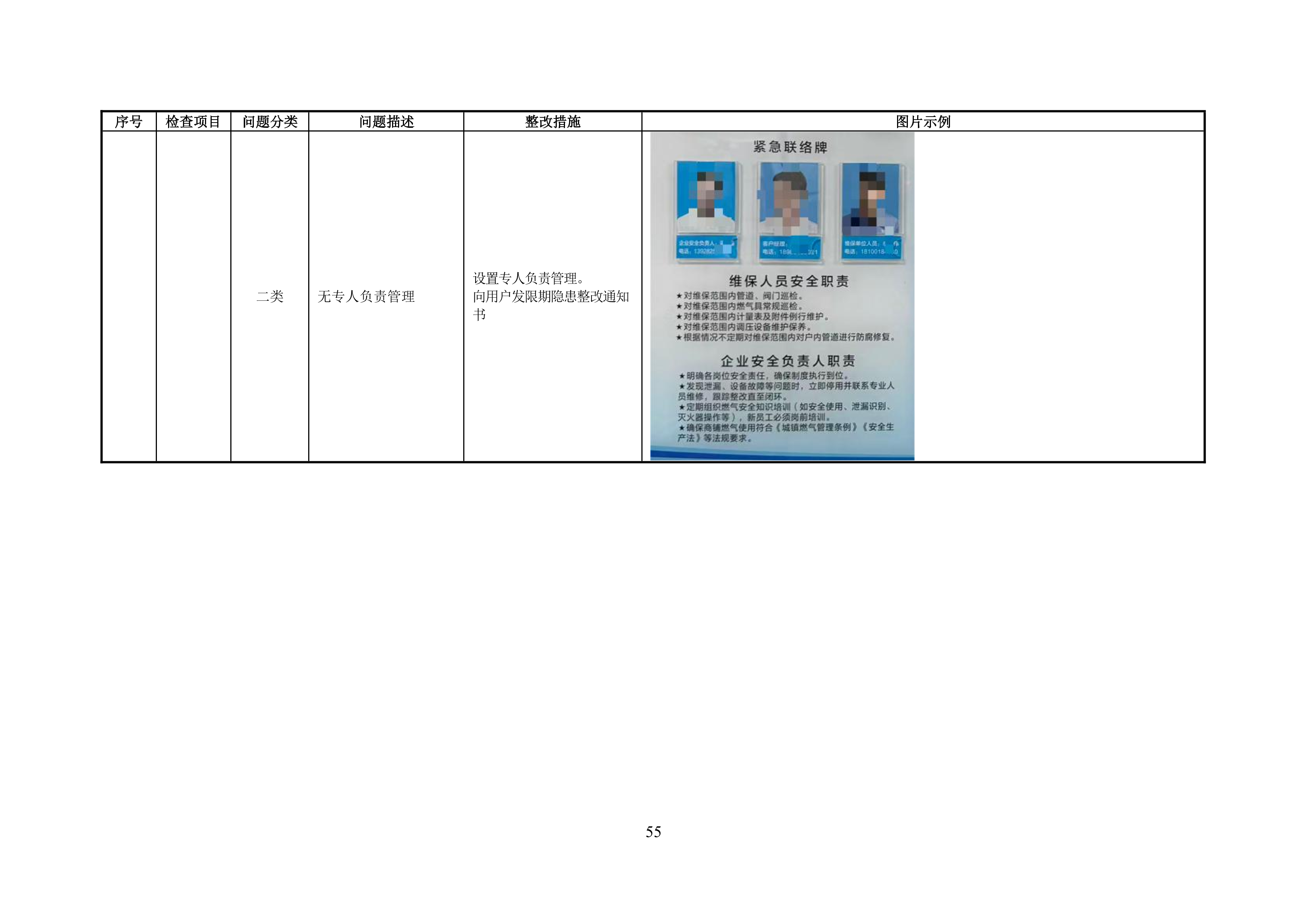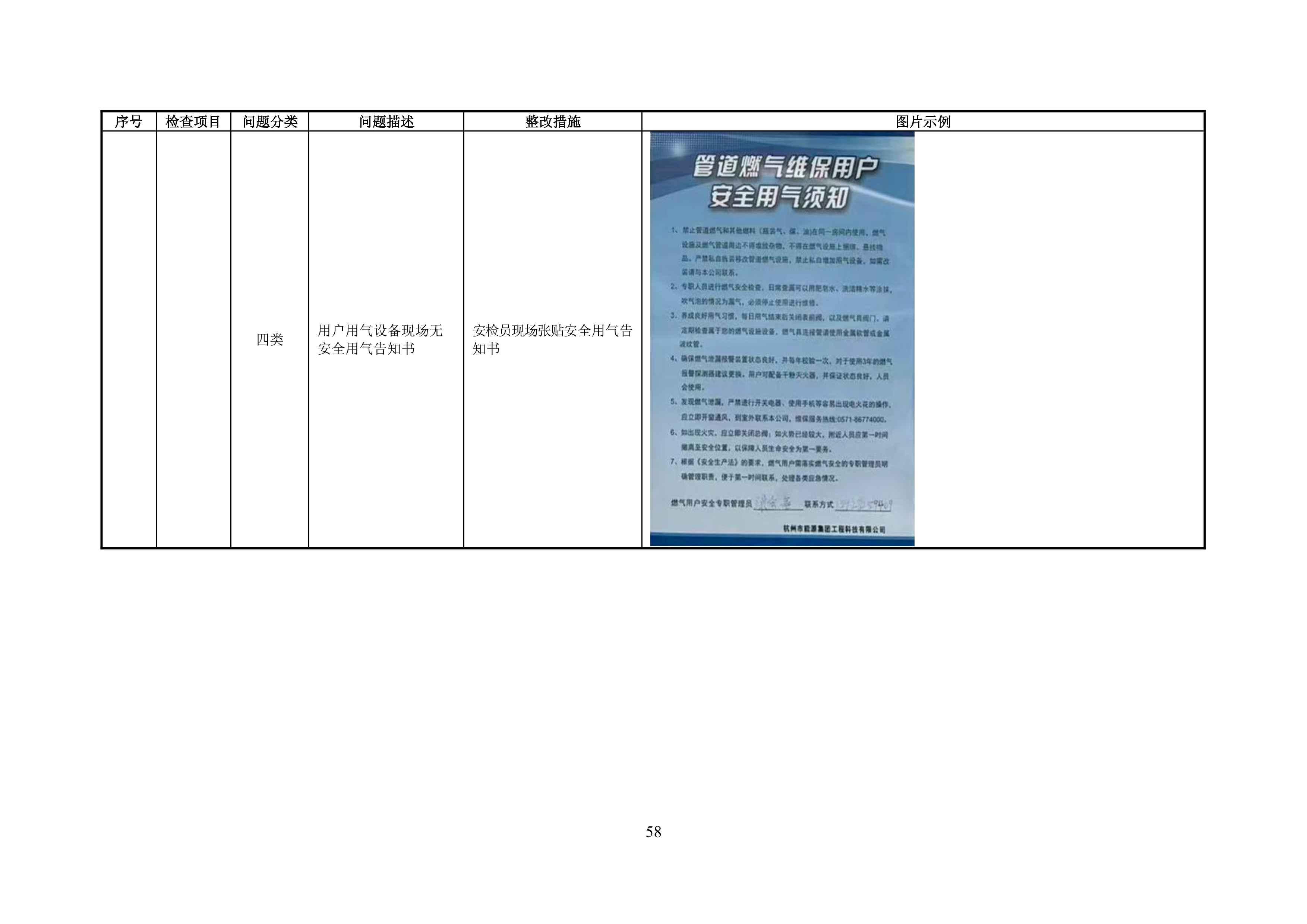 附录 D 瓶装非居民用户燃气安全问题分类表