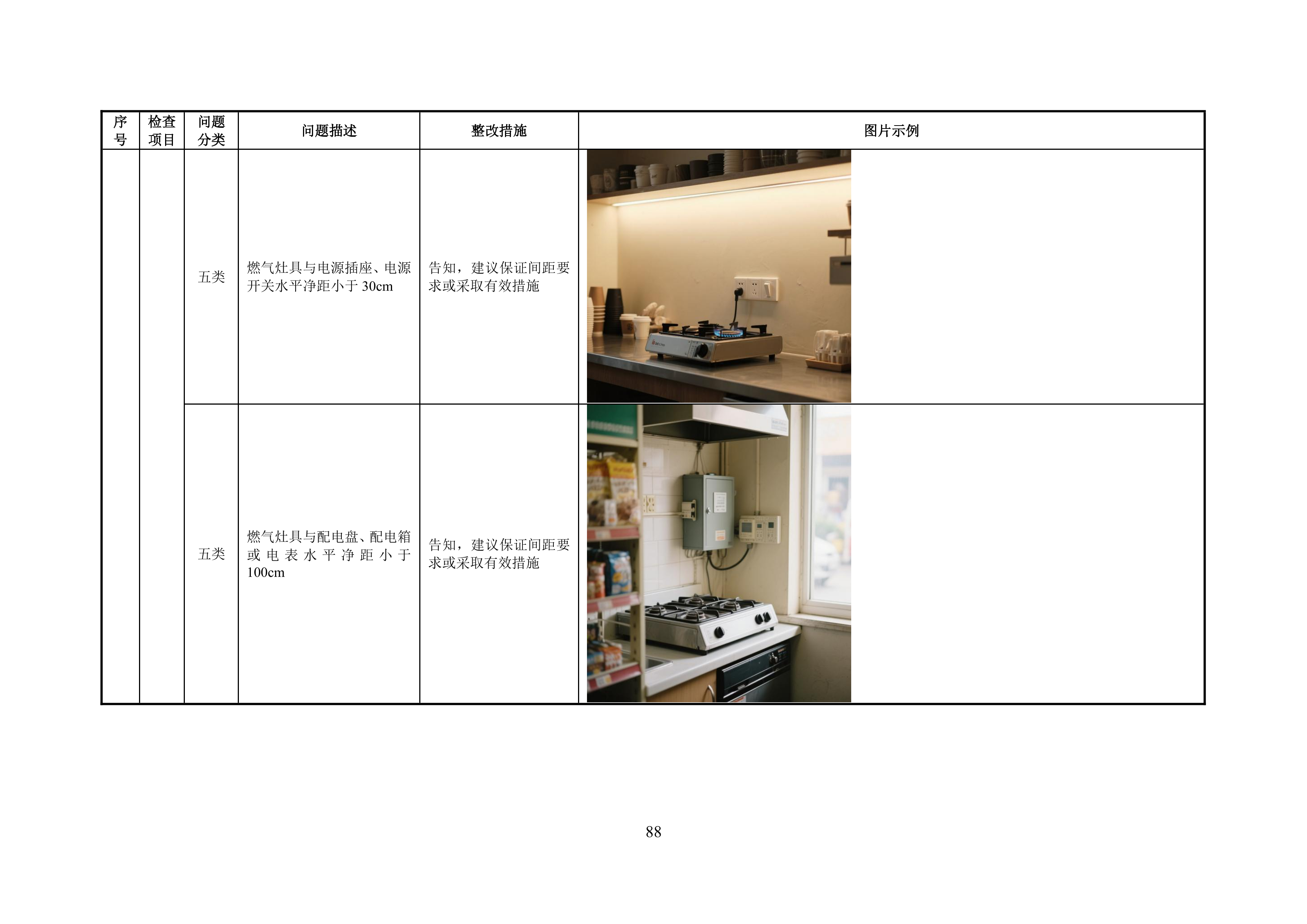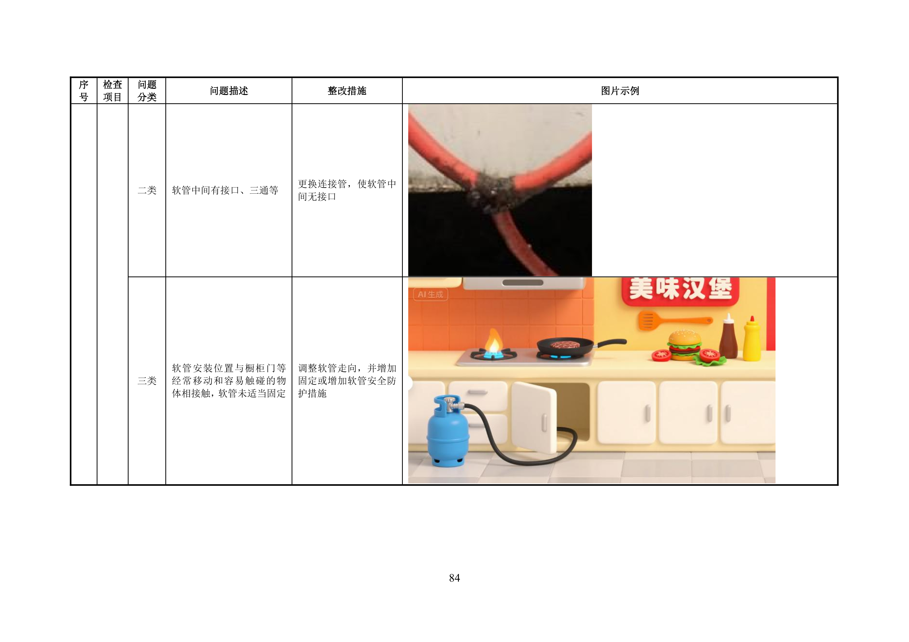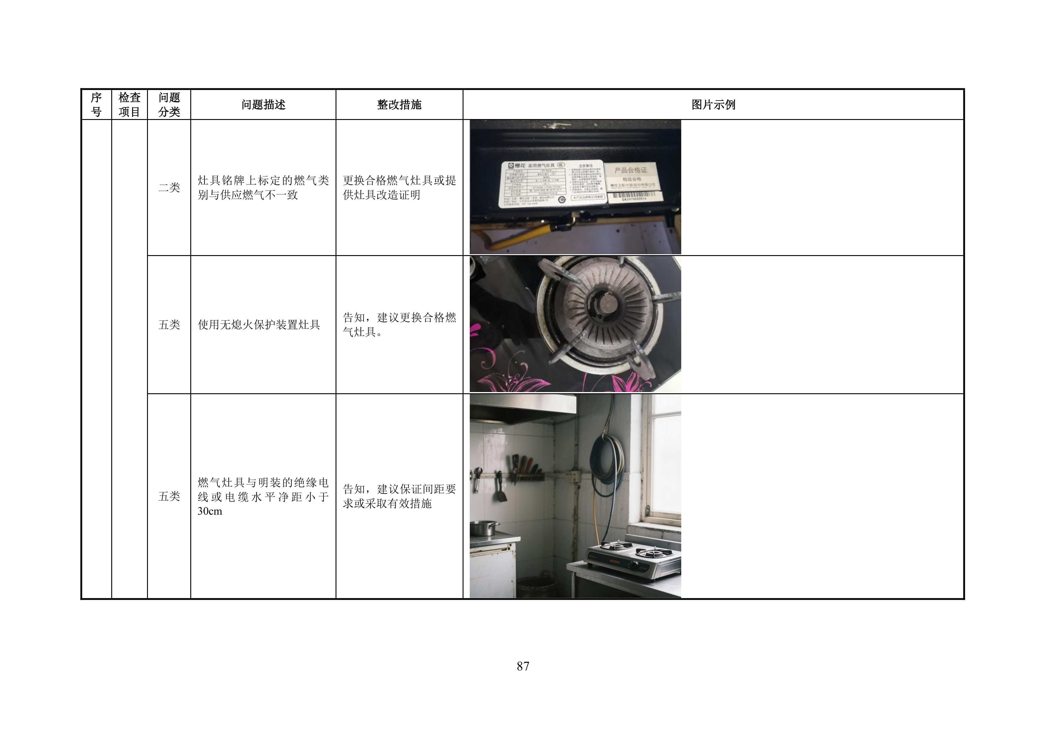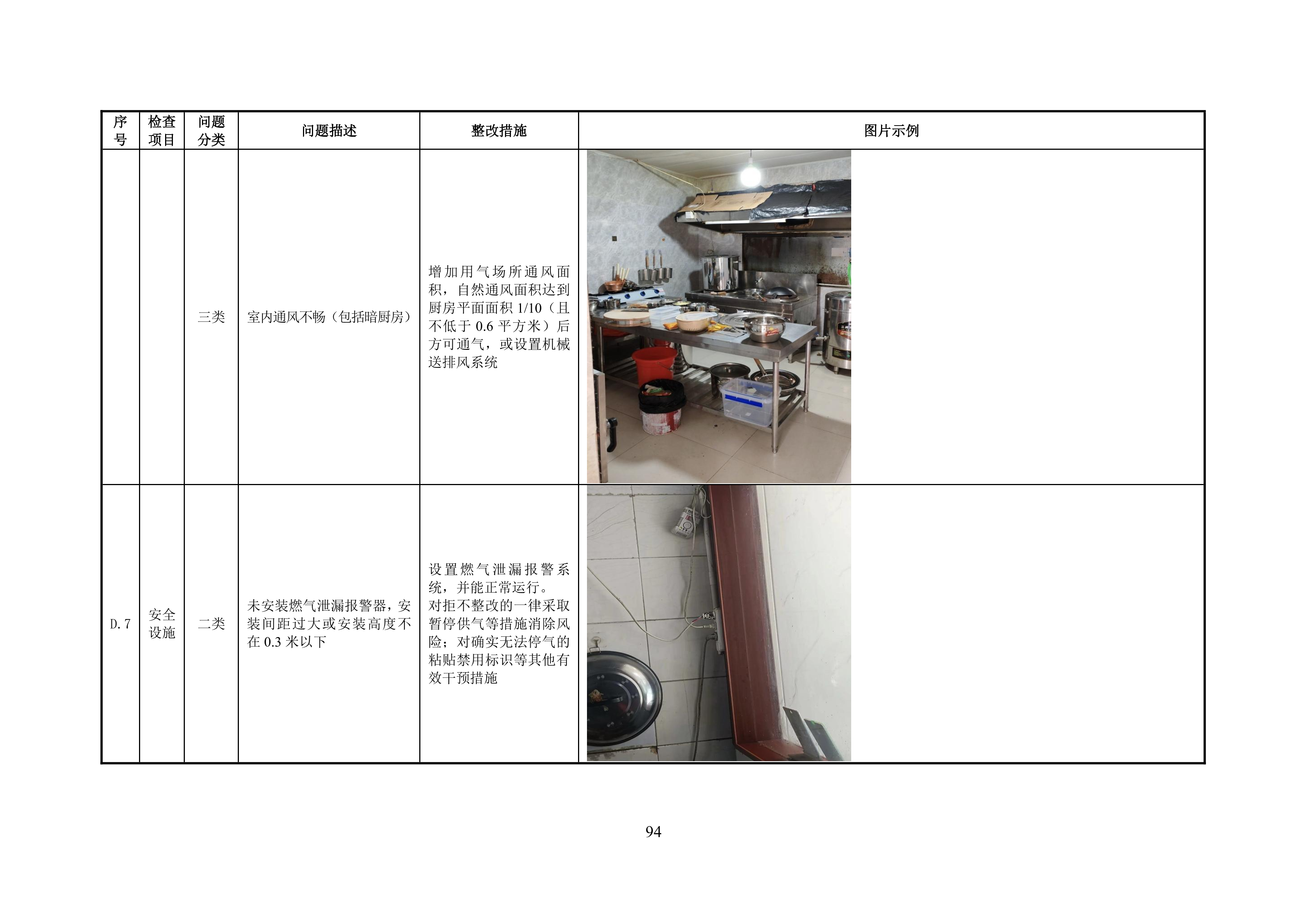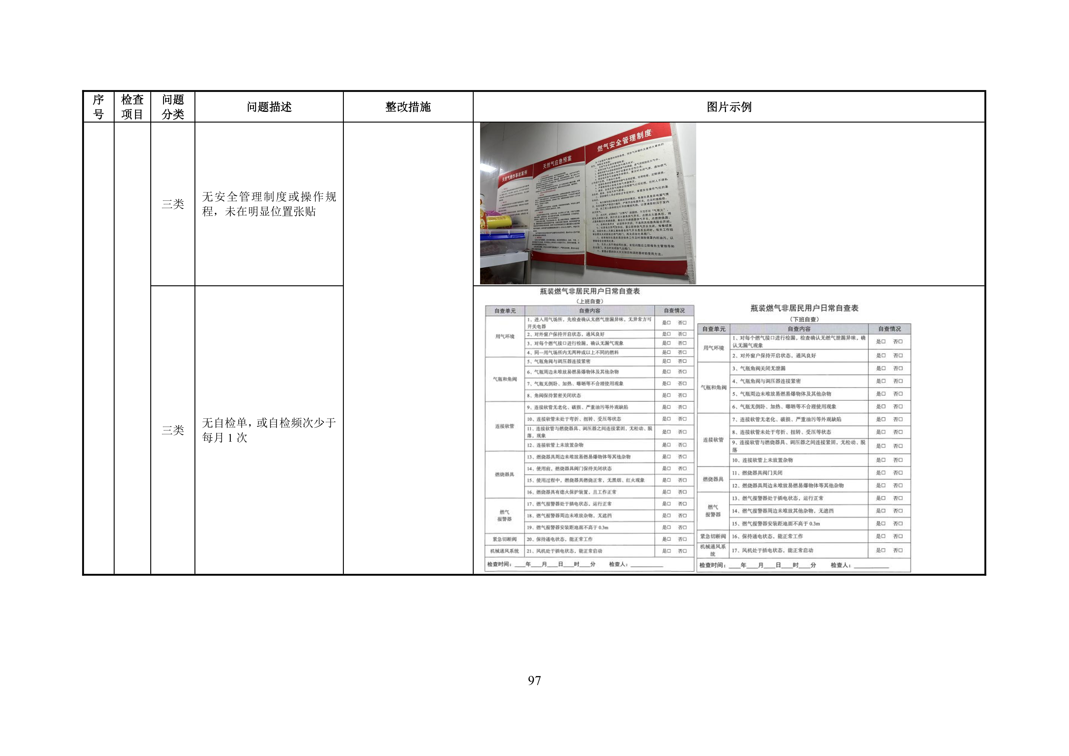 附录 D 瓶装非居民用户燃气安全问题分类表