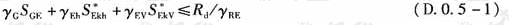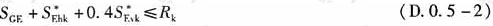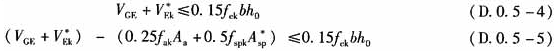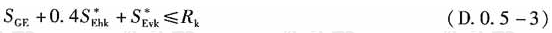 2 第2性能水准的结构,在设防烈度地震或预估的罕遇地震作用下,关键构件及普通竖向构件的抗震承载力宜符合式(D.0.5-1)的规定;耗能构件的受剪承载力宜符合式(D.0.5-1)的规定,其正截面承载力应符合下式规定: