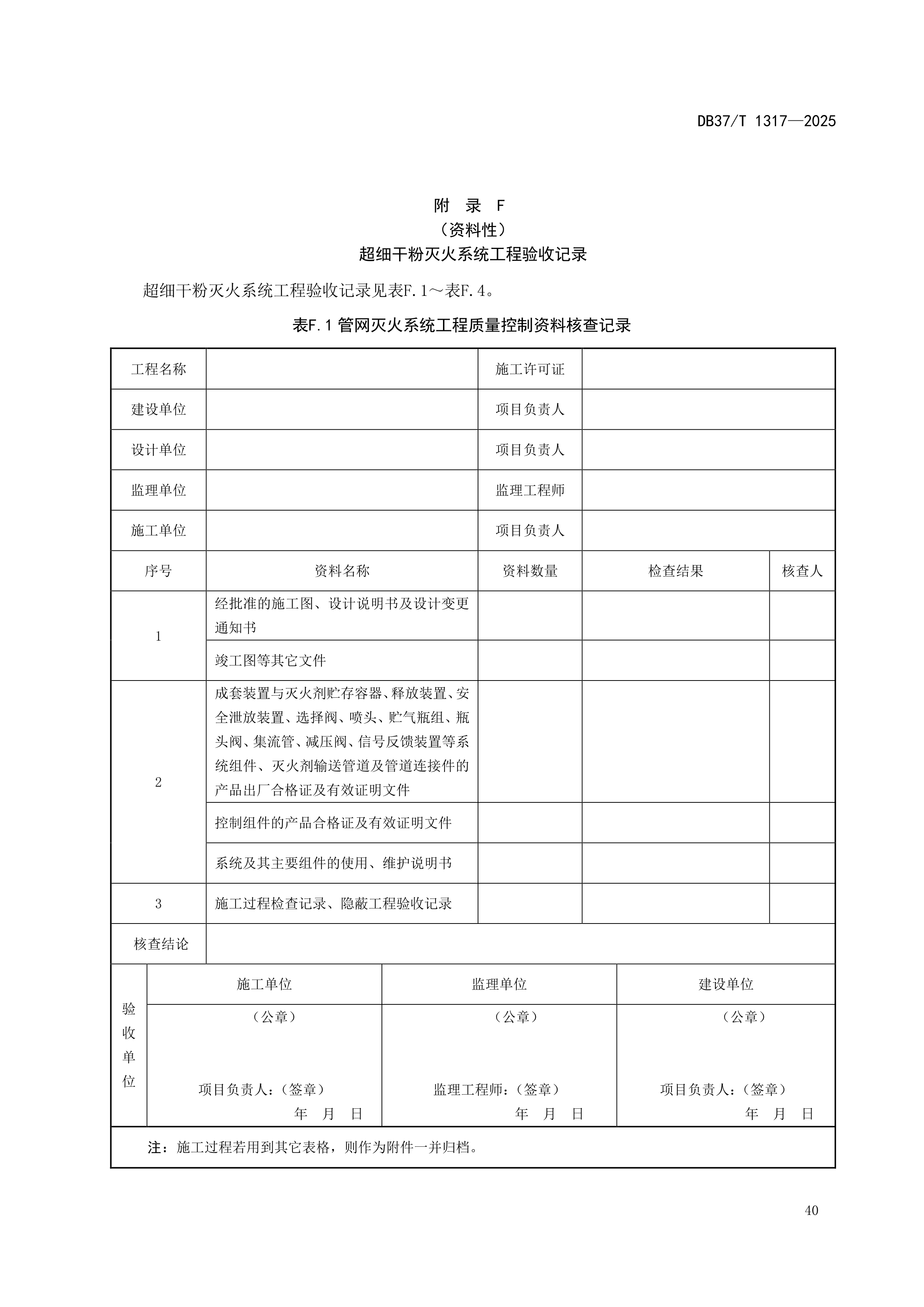 附 录 F (资料性) 超细干粉灭火系统工程验收记录