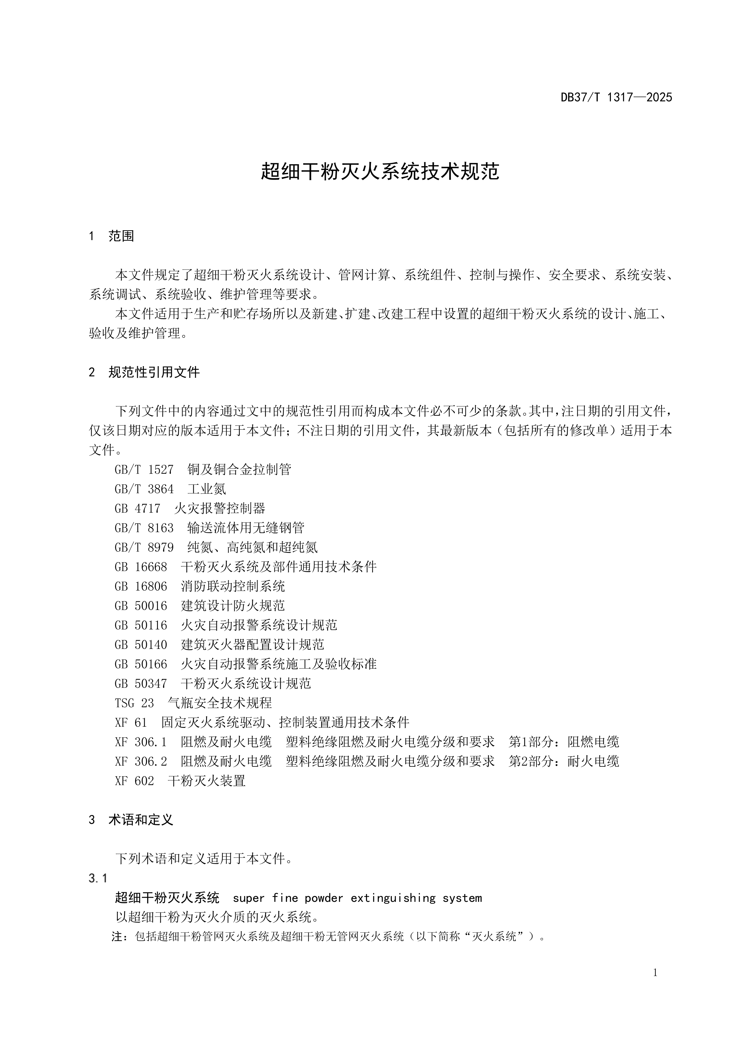 山东-超细干粉灭火系统技术规范_地方标准格式审查稿
